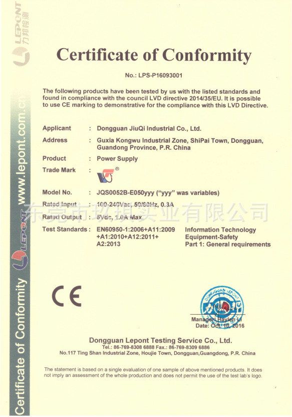 東莞玖琪實(shí)業(yè)有限公司電源適配器生產(chǎn)廠(chǎng)家:20年經(jīng)驗(yàn),專(zhuān)業(yè)開(kāi)發(fā)設(shè)計(jì)電源適配器,充電器,開(kāi)關(guān)電源,支持開(kāi)關(guān)電源定制生產(chǎn),通過(guò)CE,GS,BS,UL,ETL,FCC,PSE,KC,CCC安規(guī)認(rèn)證!