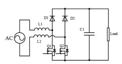 ![]() 隨著電力電子技術的發展,人們對功率變換器效率的要求也越來越高。無橋PFC電路也越來越多被采用。常規無橋boostPFC電路如圖2所示,在正半周期時,Q1作為高頻開關,Q2作為低頻開關。但是此電路的共模EMI性能較差,并沒有被廣泛采用。電路通過演變產生dualboost無橋PFC(圖3)和雙向開關型無橋PFC(圖4)。對于dualboostPFC電路,低頻續流回路為肖特基二極管D3和D4,對于雙向開關型無橋PFC,正半周期D1,D4導通,負半周期D2,D3導通,大大降低了共模EMI干擾。 由圖可見,常規無橋boostPFC和改進型的dualboostPFC驅動較為簡單,可以使用低邊驅動芯片如UCC27524。對于雙向開關型無橋PFC,驅動較為復雜,開關管Q1,Q2是共源極接法,因此可以使用TI隔離驅動芯片UCC5310/UCC5320同時驅動兩顆開關管,也可以使用兩路隔離驅動芯片UCC21520分別驅動兩顆開關管。