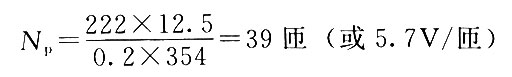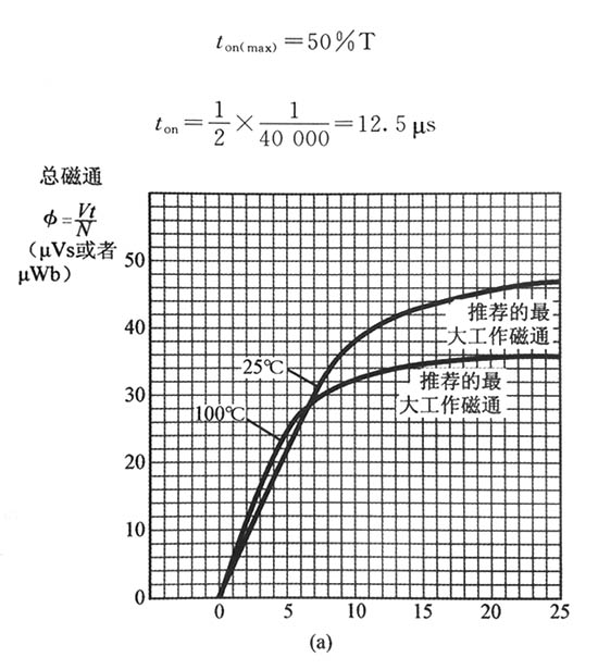 步驟5,計(jì)算原邊匝數(shù) 導(dǎo)通期間加到變壓器原邊的電壓波形是矩形,可以使用伏秒方法(法拉第定理)來計(jì)算匝數(shù)。 在推挽變壓器中,兩個(gè)象限的B/H磁環(huán)都要使用,而在穩(wěn)態(tài)平衡條件下,磁通密度偏移在正半周內(nèi)將從一B變化到+B。 應(yīng)該注意圖2。13。4表示的是峰值磁通密度B,但假設(shè)損耗是對(duì)峰峰磁通密度偏移△B(2×B)而言的。對(duì)于較佳效率,選擇的B是100mT。因此,本例中峰峰變化(磁通偏移擺幅)△B=2×B或=200mT EE5-5-21的磁心面積是354mm2,原邊匝數(shù)由下式計(jì)算