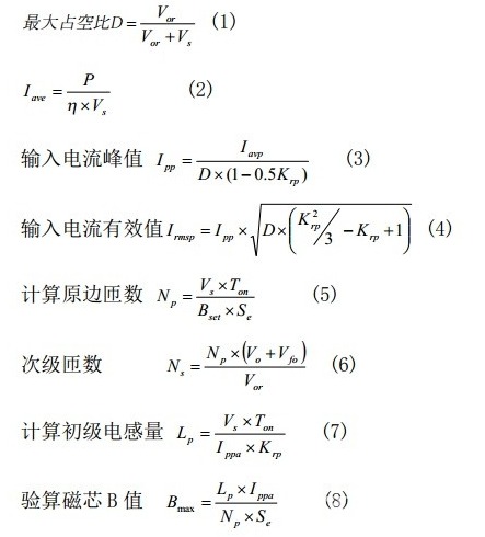 拓?fù)涫疽鈭D![]() 此圖為示意圖,圖中Ui為直流電壓,后面的C1容量較小,如果輸出改交流輸入,需要加整流電路+C1,C1的容量較大,一般寬范圍輸入,按照功率/容量比為:1:3uF,窄范圍比為1:1uF。 寬范圍一般是85~264Vac 或者90~264Vac,更有甚100~277Vac等等窄范圍一般176~264Vac 187~264Vac以及195~264Vac,或者347 +/-20%等等 講反激變壓器之前,先說明兩個定義: 1.Vor定義為反射電壓。 2.Krp定義為電流的波峰比,即峰峰值:峰值。 反激是由Buck-Boost電路演變而來,較苛刻的點為較低輸入電壓,輸出滿載時,所以我們要選擇這個點來設(shè)計。 一、選定反射電壓Vor 15W電源適配器選反射電壓就是確定大占空比 D=Vor/(Vor+Vs),D為占空比,Vor反射電壓,Vs較低輸入電壓(此電壓一般為輸入的交流Vac*1.2,因為整流后的電解電容不會無窮大)。 此公式由以下推到可得: 當(dāng)開關(guān)管開通的時候,原邊相當(dāng)于一個電感,電感兩端加上電壓,其電流值不會突變,線性的上升,有公式上升了的I=Vs*Ton/L,這三項分別是原邊輸入電壓,開關(guān)管開通時間,和原邊電感量。在開關(guān)管關(guān)斷的時候,原邊電感放電,電感電流下降,同樣要尊守上面的公式定律,此時有下降了的I=Vor*Toff/L,這三項分別是原邊感應(yīng)電壓,即放電電壓,開關(guān)管關(guān)斷時間,和電感量.在經(jīng)過一個周期后,原邊電感電流的值會回到和原來一樣,不可能會變,所以,有Vs*Ton/L=Vor*Toff/L,,上升了的,等于下降了的,上式中可以用D來代替Ton,用1-D來代替Toff,移項可得,D=Vor/(Vor+Vs),亦是大占空比。 二、確定原邊電流的參數(shù)值 無非三個值:平均值、有效值、峰值。 ![]() 上圖為原邊電流波形圖 前面已經(jīng)說過,Krp的定義,我們來解方程吧,今天先說到這,方程如下: ![]() 三、選定變壓器磁芯 選磁芯有兩種方法,一個是用AP法計算,這個計算繁瑣,而且也不是太準(zhǔn)確,二是經(jīng)驗法,我一般靠經(jīng)驗。如果沒有經(jīng)驗也沒有關(guān)系,先選一個磁芯如果不行在換大一點的,慢慢經(jīng)驗積累起來以后,就好了。 四、計算變壓器原邊匝數(shù)、線經(jīng)等 計算匝數(shù)、線經(jīng)首先要選一個B值,這個B值一般選取在0.1-0.25之間,當(dāng)然了要以較后核算的B值為準(zhǔn),一般情況不要超0.3,特殊情況可以,一般作為錳鋅鐵氧體,B值也就到4800GS,即0.48T。說到這里有個法拉第電磁感應(yīng)定律公式,V*T=L*I=N*B*S,各個字母代表意思就不用說了吧。 線經(jīng)的載流密度一般4-10A/mm2,如果是鋁基板的那種或者強(qiáng)冷風(fēng)散熱另當(dāng)別論,如果多股線的話,較好不要超過0.4mm并饒,趨膚效應(yīng)。 五、計算變壓器次邊匝數(shù)、線經(jīng)等 所有的公式和第四步基本一樣,載流密度亦同。 六、計算變壓器反饋繞組匝數(shù) 計算匝數(shù)原理同上,線經(jīng)選取0.2mm的即可,因為IC一般吃電流也就幾個mA,線太細(xì)了容易斷,太粗了成本受不了。【電源適配器代工】 七、計算變壓器電感量 公式還是法拉第電磁感應(yīng)定律公式。 八、核算以上參數(shù) 至此變壓器設(shè)計基本算完畢。