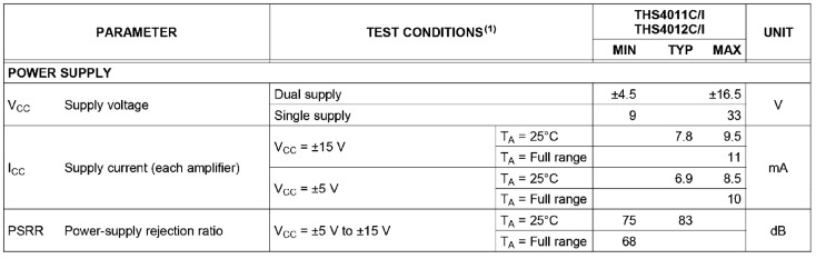 | 電源適配器電壓定義為可使放大器工作在線(xiàn)性區(qū)的可接受的VDD(或+VCC)和VSS(或-VCC)之間的差值。如果電壓差小于規(guī)定值,則放大器很可能無(wú)法可靠地工作。如果電源適配器電壓高于規(guī)定值,雖然放大器可以按預(yù)期工作,但由于施加給放大器內(nèi)晶體管的電壓過(guò)大,很可能導(dǎo)致器件損壞。在產(chǎn)品數(shù)據(jù)手冊(cè)的參數(shù)表中,通常會(huì)給出該放大器的絕對(duì)較大額定值(AbsoluteMaximumRatings),放大器的電源適配器電壓一定不能夠超過(guò)該數(shù)值。例如,OPA690的電源適配器電壓較大額定值為±6.5V。 電源適配器電流(IDD、IQ或ICC)指定為空載條件下的電流。通常,當(dāng)放大器帶有負(fù)載時(shí),拉電流主要會(huì)從VDD引腳輸出,流經(jīng)運(yùn)放的輸出級(jí)然后流向負(fù)載,而灌電流主要會(huì)導(dǎo)致VSS增加。 電源適配器參數(shù)(VSS、VDD和IDD、IQ)通常作為獨(dú)立項(xiàng)出現(xiàn)在產(chǎn)品數(shù)據(jù)手冊(cè)的參數(shù)表中。該參數(shù)偶而也會(huì)作為PSRR參數(shù)的測(cè)試條件。圖所示為[1]THS4011、THS4012數(shù)據(jù)表的電源適配器參數(shù)。 ![]() 電源適配器抑制比(PSRR) 1.電源適配器電壓抑制比的定義 電源適配器抑制比(PSRR,PowerSupplyRejectionRatio)是與電源適配器抑制比參數(shù)kSVR相同的。它被定義為電源適配器電壓的改變量與由此引起的輸入失調(diào)電壓改變量之比的絕對(duì)值。在一般情況下,電源適配器的兩個(gè)端電壓是對(duì)稱(chēng)變化的。它的單位是分貝(dB)。 電源適配器電壓會(huì)影響到輸入差分對(duì)的偏置點(diǎn)。由于輸入電路固有不匹配,偏置點(diǎn)的改變會(huì)引起失調(diào)電壓的改變,進(jìn)而引起輸出電壓的改變。 對(duì)于雙電源適配器運(yùn)放,PSRR=ΔVCC±/ΔVOS或者ΔVDD±/ΔVOS。ΔVCC±中的正負(fù)號(hào)表示正負(fù)電源適配器是對(duì)稱(chēng)地改變的。對(duì)于單電源適配器運(yùn)放,PSRR=ΔVCC/ΔVOS或者ΔVDD/ΔVOS。同時(shí)還應(yīng)該看到,PSRR的生成機(jī)理是與共模抑制比CMRR相同的。因此,在數(shù)據(jù)手冊(cè)中,PSRR也被歸入直流參數(shù)。當(dāng)把PSRR與頻率的關(guān)系畫(huà)成曲線(xiàn)時(shí),這條曲線(xiàn)將隨頻率的增加而下降。 如果改變運(yùn)放的供電電壓,其輸出電壓本不應(yīng)該發(fā)生變化,但是實(shí)際上它的確會(huì)有變化。如果供電電壓改變X伏時(shí)引起的輸出電壓變化量與差分輸入改變Y伏引起的輸出變化相等,那么運(yùn)放的PSRR=X/Y。在PSRR的定義中,假設(shè)電源適配器正負(fù)電壓同時(shí)向相反方向改變同樣的大小,否則將引起共模變化,令分析更為復(fù)雜。PSRR不同,對(duì)電源適配器正負(fù)電壓的抑制效果也不同。 2.電源適配器電壓波動(dòng)對(duì)輸出電壓的影響 電源適配器電壓波動(dòng)對(duì)輸出電壓有直接的影響。 〖舉例〗對(duì)于電池供電的放大器電路要求運(yùn)放必須具有良好的電源適配器抑制性能。在圖1.1.2所示電路中,使用電池來(lái)為放大器供電,放大器被配置為具有高閉環(huán)增益101V/V。 ![]() 在電池的生命周期中,隨著使用時(shí)間的推移,電池的輸出電壓會(huì)從5.75V逐漸降至4.75V。如果該放大器的電源適配器抑制比為500μV/V(或66dB),隨著時(shí)間推移,放大器輸出端的誤差將為50.5mV。在一個(gè)滿(mǎn)量程為4.096V的12位系統(tǒng)中,這相當(dāng)于在電池的生命周期中,失調(diào)電壓變化量的50.5倍。 PSR(V/V)=ΔVOS/ΔVSUPPLY VOUT=(1+RF/RIN)(VIN+VOS) 在電池供電應(yīng)用中,可以看見(jiàn)電池供電電壓會(huì)在電池的整個(gè)生命周期中變化幾百毫伏。若將此類(lèi)應(yīng)用中運(yùn)放配置為高閉環(huán)增益,則要求運(yùn)放必須具有良好的電源適配器抑制性能。 3.電源適配器抑制比的頻率響應(yīng) 電源適配器抑制比參數(shù)量化了放大器對(duì)電源適配器變化的敏感度。理想情況下,電源適配器抑制比應(yīng)該是無(wú)窮大。一般放大器的電源適配器抑制比的范圍為60~100dB。 與放大器的開(kāi)環(huán)增益(AOL)特性一樣,PSRR也是頻率的函數(shù),隨著頻率的升高,PSRR的數(shù)值開(kāi)始下降。如圖1.1.3所示[4],電源適配器產(chǎn)生的變化(或者噪聲,疊加在電源適配器上的噪聲也會(huì)引起電源適配器電壓的變化)在1kHz以下,+PSRR約為130dB;之后,隨著頻率的上升,PSRR不斷下降。而-PSRR隨著頻率的上升,不斷下降。很明顯,對(duì)高頻電源適配器變化(噪聲)的抑制能力要低于對(duì)直流和低頻電源適配器變化(噪聲)的抑制能力。 ![]() 注意:開(kāi)關(guān)電源適配器產(chǎn)生的噪聲頻率為50~500kHz或者更高。在這些頻率范圍,PSRR的幾乎為零。所以,在電源適配器上的噪聲會(huì)引起運(yùn)算放大器在輸出端產(chǎn)生噪聲。對(duì)此,必須采用適當(dāng)?shù)呐月罚ㄈヱ睿┘夹g(shù)。 在閉環(huán)系統(tǒng)中,放大器的電源適配器抑制能力略低于理想情況,它表現(xiàn)為失調(diào)電壓誤差的形式(PSRRERROR=ΔVOS)。描述這一誤差的公式如下: PSRR(dB)=20lg(ΔVSUPPLY/ΔVOS) 描述電源適配器抑制能力的公式為 PSR(V/V)=ΔVOS/ΔVSUPPLY 式中,VSUPPLY=VDD-VSS;ΔVOS表示電源適配器電壓變化ΔVSUPPLY時(shí),引起輸出電壓變化ΔVO折合到輸入端的失調(diào)電壓,ΔVOS=ΔVO/ΔAvd。ΔAvd為放大器的直流放大倍數(shù)。 〖舉例〗帶有較