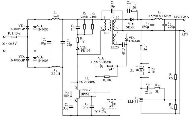 15W、12V電源適配器應用電路