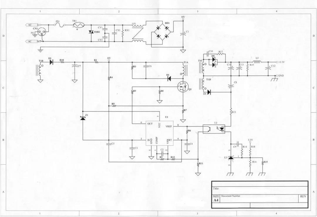 13)其它: 因?yàn)檩敵鰹?.3V,而TL431的Vref值為2.5V,若再加上photo coupler上的壓降約1.2V,將使得輸出電壓無法推動(dòng)Photo coupler及TL431,所以必須另外增加一組線圈提供回授路徑所需的電壓。