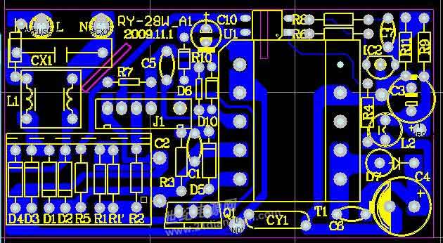 | 開關電源的PCB排版設計注意要點 1,Y電容的放置 2,主電流回路 3,信號地與功率地 4,輸入LC濾波 5,帶地線AC接口 6,輸出LC濾波 7,開關管與散熱片 以上是開關電源的基本部分,如果你能把上面幾個注意點都搞定,無論是裸板,還是帶外殼的,那么在做認證測試的時候都可以輕輕松松,遇到某一頻點超出,只需換安規元件即可 先談Y電容放置 Y電容通用腳距是10mm,留出焊盤,中間的空隙是8mm,中間不要走線 中間不走線,放置的地方當然是板的上下,左為強電,右為弱電,強電端的GND為功率地,弱電端的GND是靠近變壓器的GND引腳 對于有輸入地線的,就有3個Y,放置也是有講究的 不難看出,這個圖的主電流回路應該是短的了,大家可以參考,比較適合5~40W電源適配器 再往大功率的,遵循的還是兩點: 1,主電流回路不要使用跳線,如果一定要使用跳線就需加套管,跳線的上面如果有元器件的話,還需要點膠 2,在有限平面積里及安全距離內盡可能的加粗,如果不能加粗,就需要加輔焊層 3,信號地與功率地 拿PWM控制反激來說,區分兩個地其實是為了讓PWM芯片免受干擾,也就是說,芯片需要輔助電源,那么芯片的接地端應該接輔助電源濾波電容上,而不應該接在大電容上 半橋或者全橋及其他,如果控制芯片與輸入非隔離的話,那同反激一樣,如果是隔離(例如有些有待機輔助電源的),那么應該在電源上加1~3個0.1uF的電容。 第4,輸入LC濾波 在這里只說針對寬電壓85~264V這些開關電源加以闡述 1,輸入X電容封裝大小,因為X電容的尺寸都已經標準化,假如你在認證時需要加大X電容時,如果封裝小了,是非常頭疼的,所以X電容在設計之初時就要做好準備,寧愿大點,千萬不要小,省錢可以在其他地方省不要在這里省 2,壓敏電阻,壓敏電阻有的是不帶護套,而帶了護套尺寸要大一號,所以同X電容一樣,需要預留多點空間 3,L,共模和差模,設計時是否要差模需要驗證,對于小功率的一般都不加 4,NTC/PTC,一個是負溫度系數,一個是正溫度系數,兩個的作用都是防止浪涌電流 放個圖