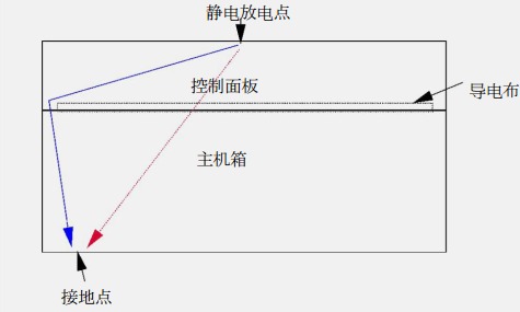 某多媒體產(chǎn)品進行 EMC 測試時,在檢查機箱的屏蔽效能時, 發(fā)現(xiàn)粘貼在機箱上的導(dǎo)電布與機箱之間阻抗為無限大。 該機箱為了提高控制面板和主機箱之間的屏蔽效能, 在控制面板上粘貼了一條導(dǎo)電布, 在測量導(dǎo)電布與機箱之間的連接阻抗時,我們發(fā)現(xiàn), 導(dǎo)電布和機箱之間阻抗為無限大, 進行了反復(fù)實驗, 結(jié)論都是一樣:導(dǎo)電布和機箱之間沒有連接關(guān)系。 這是什么原因?難道是導(dǎo)電布不導(dǎo)電?在導(dǎo)電布上任意兩點之間進行測量,都是相通的。 難道是粘貼導(dǎo)電布的粘貼膠不導(dǎo)電?撕掉導(dǎo)電布在粘貼膠上進行測量,在粘貼膠上任何兩點之間都是不通的,使勁按時會通,那是因為探針將膠穿透了。