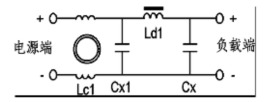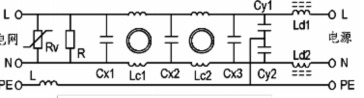 對一般的電源端連續傳導騷擾可以通過以下的電路加以抑制: