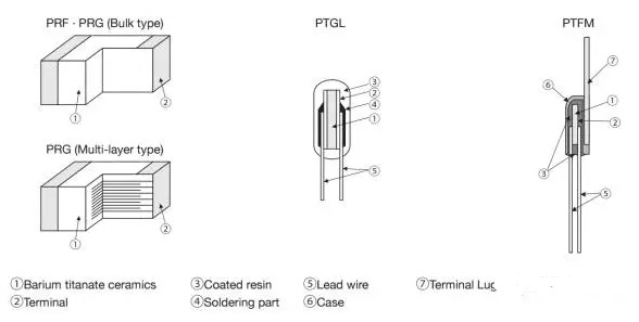 陶瓷PTC,其電阻材料是一種多晶體陶瓷,是碳酸鋇、二氧化鈦等多種材料的混合物燒結而成。PTC溫度系數具有很強的非線性,當溫度超過一定閾值時電阻會變得很大,相當于斷路,從而可以起到短路和過流保護的作用。