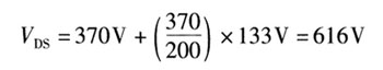 折算到交流220V+20%(264V)輸入的整流輸出電壓為370,由于以整流輸出電壓在200V以上時電感電流為電流斷續(xù)狀態(tài)這時的占空比是20V的0?54倍,為21pS;開關(guān)管上的電壓為