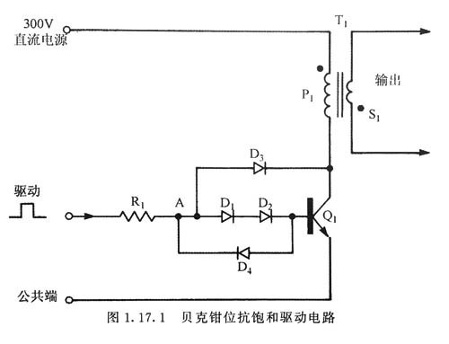 在高壓雙極型開關(guān)晶體管中,“下降時(shí)間”(關(guān)斷沿的速度或者dv/dt)主要由基極驅(qū)動(dòng)關(guān)斷電流特性曲線的形狀來決定,見第一部分第15章。從基極關(guān)斷驅(qū)動(dòng)的施加到真正關(guān)斷沿之間的延時(shí)是存儲(chǔ)延時(shí)時(shí)間,它取決于關(guān)斷之前的基區(qū)少數(shù)載流子濃度。 存儲(chǔ)時(shí)間可以通過使少數(shù)載流子較低來較小化,具體地說,在晶體管關(guān)斷之前,保證其基極電流剛好滿足驅(qū)動(dòng),而保持晶體管處在準(zhǔn)飽和的狀態(tài)。 經(jīng)常用來實(shí)現(xiàn)使少數(shù)載流子濃度較低的一種方法叫作二極管貝克鉗位電路。因?yàn)檫@種方法的優(yōu)點(diǎn)是對(duì)驅(qū)動(dòng)進(jìn)行帶負(fù)反饋的動(dòng)態(tài)鉗位,所以能夠?qū)Ω鞣N器件的增益以及飽和電壓不可避免的變化有補(bǔ)償作用,同時(shí)它也會(huì)對(duì)由于溫度與負(fù)載變化而引起的開關(guān)晶體管參數(shù)的變化做出反應(yīng)。