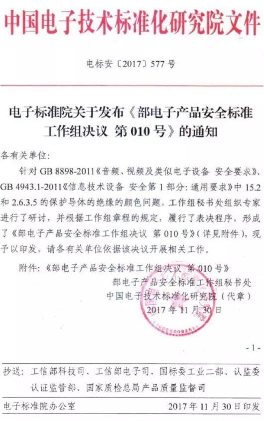經工信部1A電源適配器電子產品安全標準工作組專家討論和投票表決,008號決議于2016年2月3日正式發布,現再次公布如下: