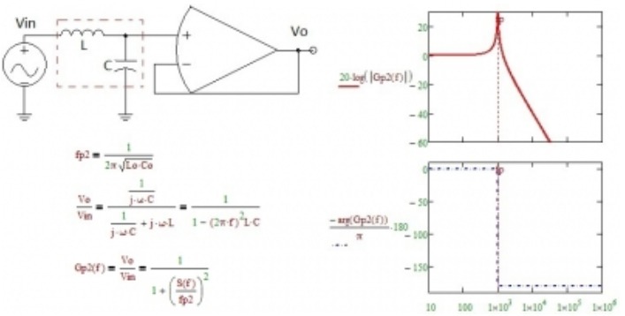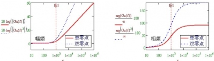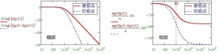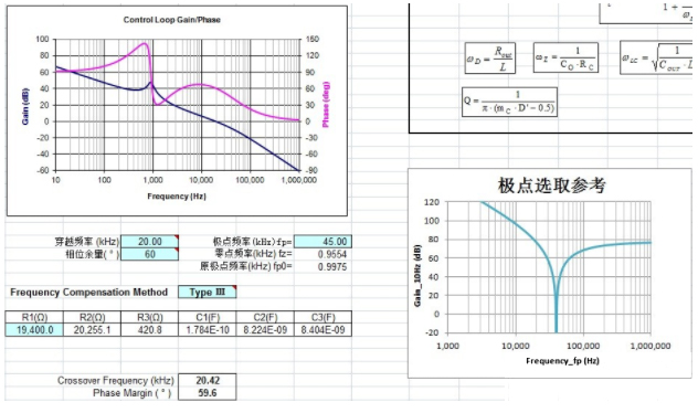 由于平板電腦電源適配器缺乏控制理論方面的知識在剛接觸反饋環(huán)路的時候?qū)ζ渲械暮芏嗝~不是很明白,這次準(zhǔn)備采用圖解的方法逐一的搞清楚這些名詞并且試圖找出一種便捷的設(shè)置零、極點的方法。大家可以分享。共同探討,進步。![]() 在經(jīng)典控制理論中經(jīng)常看到PID控制(比例、積分、微分),這三者是獨立的互不影響的所以容易調(diào)節(jié)。零極點的方法同PID有異曲同工之妙,如果有被控系統(tǒng)的精確模型那么只要在bode圖上移動零極點并采用加減運算就能得出較理想的控制效果,貌似比PID還簡單(PID的優(yōu)點是無需被控系統(tǒng)的模型)。如何理解零極點、雙重零極點、斜率-1過穿越頻率、條件穩(wěn)定、1/2fs采樣定理等等將是首先探討的問題。 采樣頻率和被控對象的數(shù)學(xué)模型有什么必然的聯(lián)系?PID中的參數(shù)因相互獨立容易實現(xiàn)“盲調(diào)”,比如工程上不容易建模,被控對象又不復(fù)雜的,經(jīng)常會采用如下口訣 參數(shù)整定找較佳,從大到小順序查 先是比例后積分,較后再把微分加 曲線振蕩很頻繁,比例度盤要放大 曲線漂浮繞大灣,比例度盤往小扳 曲線偏離回復(fù)慢,積分時間往下降 曲線波動周期長,積分時間再加長 曲線振蕩頻率快,先把微分降下來 動差大來波動慢。微分時間應(yīng)加長 理想曲線兩個波,前高后低4比1 一看二調(diào)多分析,調(diào)節(jié)質(zhì)量不會低 ![]() 圖1-1-1 單極點1—RC低通濾波器 單極點的特性如圖1-1-1所示可用一個RC低通濾波器來表述。隨著輸入信號頻率的增加輸出的電壓幅值不斷下降相位逐漸逼近-90度(相位滯后)。 符合這一特性的還有LR低通濾波器,見下圖: ![]() 圖1-1-2 單極點2—LR低通濾波器 從兩張圖可以看出極點的特性是使信號幅值發(fā)生衰減這對系統(tǒng)穩(wěn)定有益,不過相位滯后不利于系統(tǒng)穩(wěn)定。從bode圖上看極點就是使增益曲線發(fā)生順時針旋轉(zhuǎn)的拐點,從公式上看就是能使分母等于零從而得到一個極大值(后面提到的原極點會比較明顯)。 如果將圖1-1-1和圖1-1-2串聯(lián)起來使用對幅值的衰減能力更強,其幅頻特性和相頻特性曲線如下: ![]() 圖1-1-3中紅色曲線為單極點藍(lán)線虛線為兩個單極點串聯(lián),串聯(lián)后幅頻曲線由斜率-1變?yōu)榱诵甭?2,相位由-90度滯后為-180度,這就是雙極點的特性。 一般電路中的雙極點是由LC電路產(chǎn)生的,理想的不帶寄生電阻的LC雙極點圖如下: ![]() 在圖1-1-1中如果電容取無窮大(或RC無窮大)其極點頻率fp=1/(2πRC)將無限接近于零,變成了過零點的極點——零極點(或稱原極點)。這時RC電路無限接近于積分電路,在實際補償環(huán)路中一般就是用積分電路來實現(xiàn)的零極點。 ![]() 從公式上看當(dāng)頻率f=0時分母等于零傳遞函數(shù)的增益無窮大,所以零極點可以用來提升靜態(tài)增益(零頻增益)。在補償環(huán)路中零極點一般是必須和首先增加的環(huán)節(jié)。 零點的特性剛好跟極點相反,對信號的幅值進行放大同時相位產(chǎn)生+90度偏移(相位超前),前者不利于系統(tǒng)穩(wěn)定后者有益于系統(tǒng)穩(wěn)定。由于要對信號進行放大所以單零點電路要借助于運放來搭建。 ![]() 如圖1-2-1從bode圖上看零點就是增益曲線發(fā)生逆時針旋轉(zhuǎn)的拐點,從公式上看零點在分子上可以使方程得到零值。 圖1-2-1中的電路兩個串聯(lián)就構(gòu)成了雙零點電路,幅頻特性和相頻特性曲線如下: ![]() 如果將圖1-1-1的單零點和圖1-2-1的單極點串聯(lián)起來使用結(jié)果會如何? ![]() 圖1-2-3 零點、極點重合 圖1-2-3顯示當(dāng)零、極點重合后輸出信號和輸入信號一致不發(fā)生任何改變。從這里可以得出一個結(jié)論:極點可用零點來補償零點可用極點來補償,雙極點可用雙零點來補償。