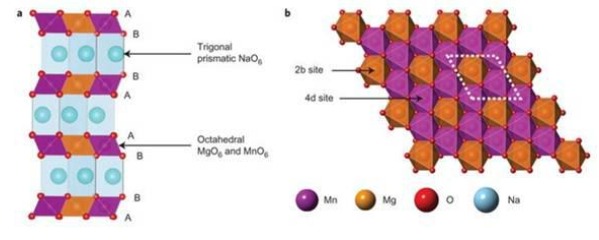 近日, Bruce 教授在鈉離子電池的正極材料研究中又取得巨大的突破并發表 在 Nature 子刊上。 (Nature Chem., 2018, 10, 288–295) 文章報道了一種 P2 型的 Na2/3[Mg0.28Mn0.72]O2 層狀鈉離子電池正極材料, 具有近 170 mAh/g 的 高比容量和近 2.75V 的放電電壓。 而這高的容量來自于該材料的穩定結構以及氧 元素的氧化還原。 在鈉離子脫出時,低含量的鈉促進了 O2 結構的氧化層的形成。 此外氧在充電過程中存在氧化還原反應又額外貢獻了容量。 同時 Mg2+的引入 又抑制了氧的損失。這項工作對鋰電和鈉電正極材料中氧的氧化還原所提供額外 容量的現象又提供了進一步的認識, 此外也提供了從結構和組分上來設計材料, 通過抑制氧的流失來實現高容量的正極材料的新路徑。