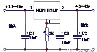 芯片的引腳排列見(jiàn)圖1,芯片的標(biāo)記是7LPXX,它的意思是XX代表15、18、25、33、50、AD.代表每一種芯片上的標(biāo)記是它的輸出電壓1.5V、1.8V、2.5V、3.3V、5.0V、Adj(可調(diào)電壓)。
