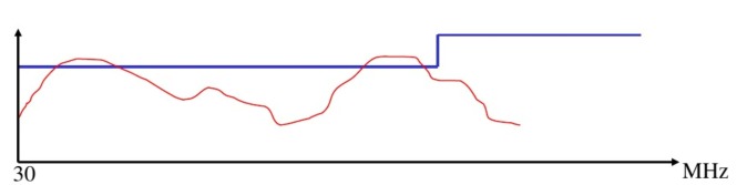 寬帶噪聲抑制方法 譜線問(wèn)題描述: 30~300MHz頻段內(nèi)出現(xiàn)寬帶噪聲超標(biāo), 如下圖: