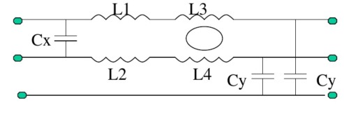 L1、 L2:差模電感 Cx:差模電容 L3、 L4:共模電感 Cy:共模電容