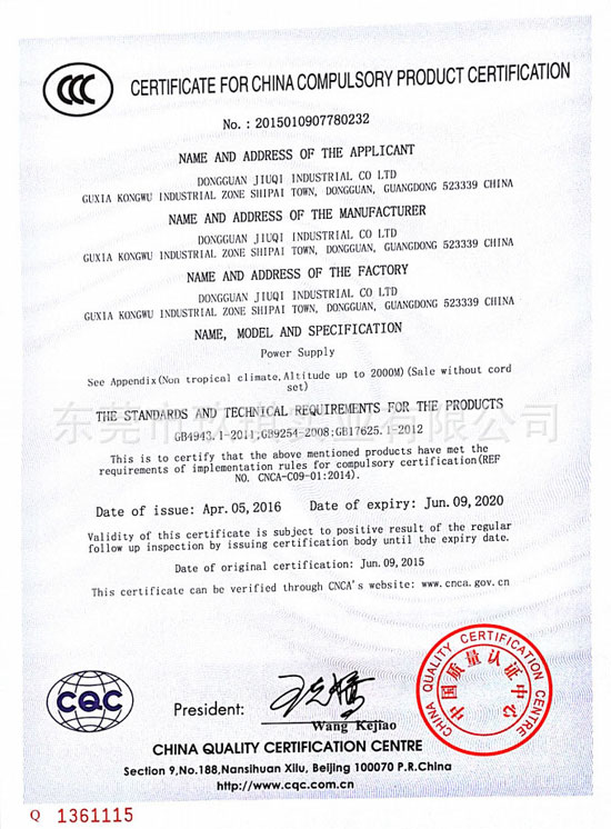 網(wǎng)站首頁 » 產(chǎn)品展示 » 產(chǎn)品認證 » 13.5W證書 » CCC安規(guī)證書-13.5W系列電源適配器