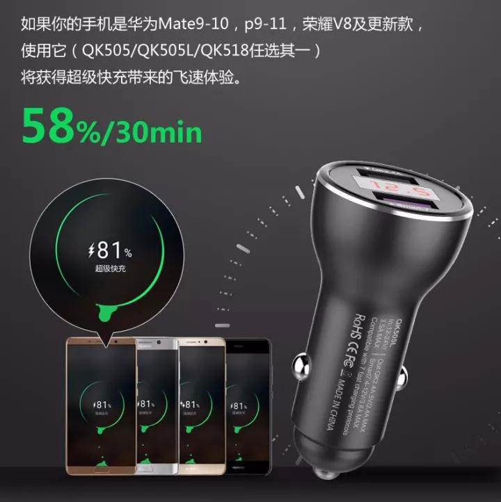 QK505/QK505L主推華為超級快充,QC2.0/3.0快充。