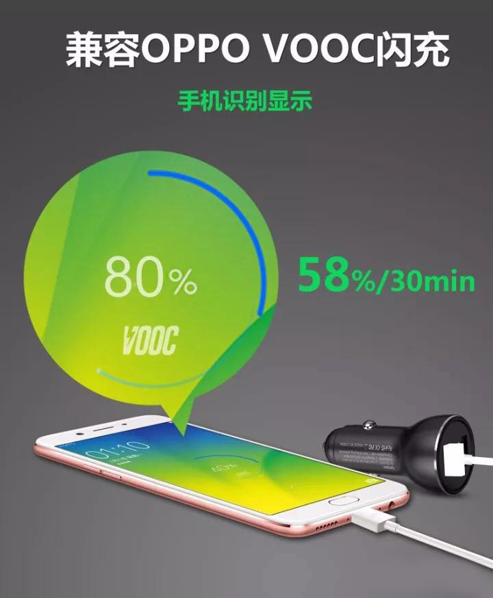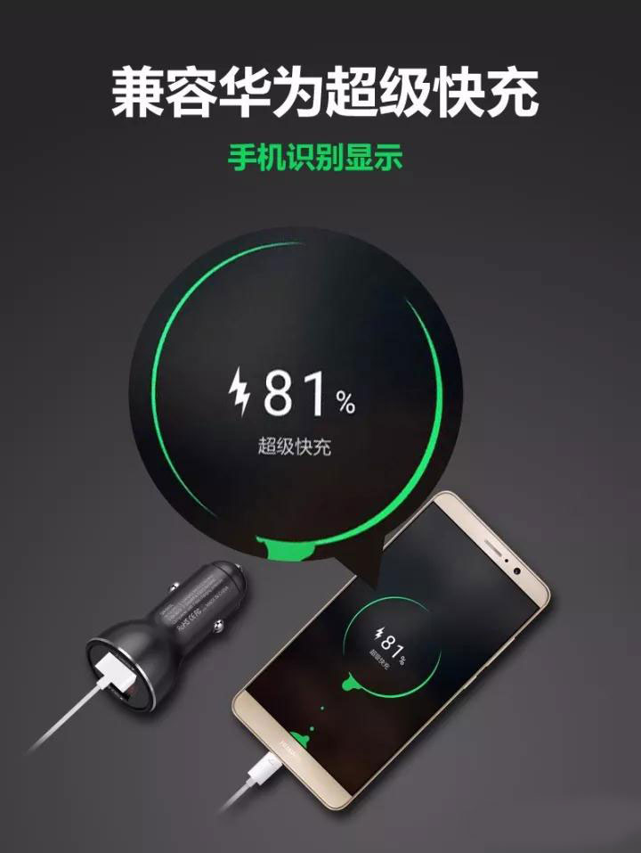 新款車載充電器 兼容華為P9/10 MATE 9/10超級快充 OPPO VOOC閃充 QC3.0/2.0 等安卓全功能快充