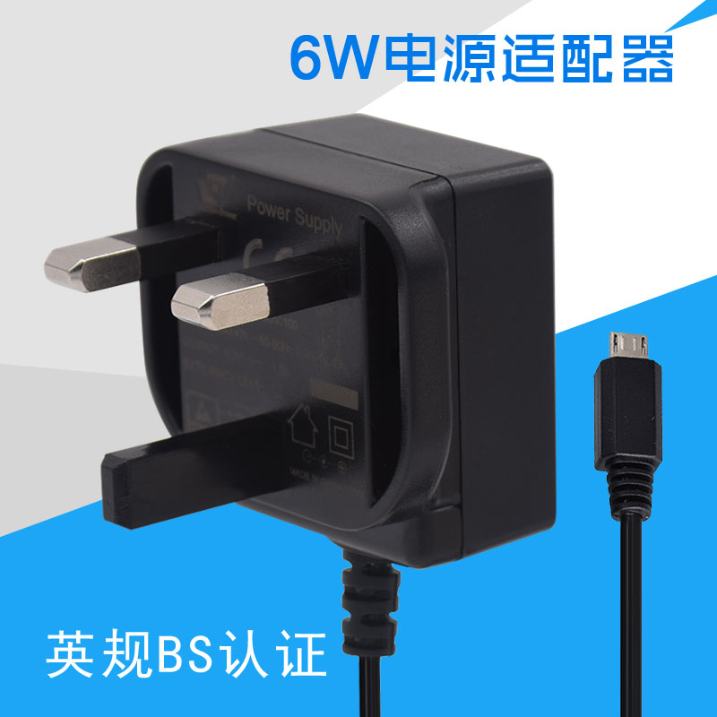 電源適配器生產廠家供應5V1.2A電源適配器 6W英國三插充電頭具有高效率的電路設計,性能穩定,低溫升的特點